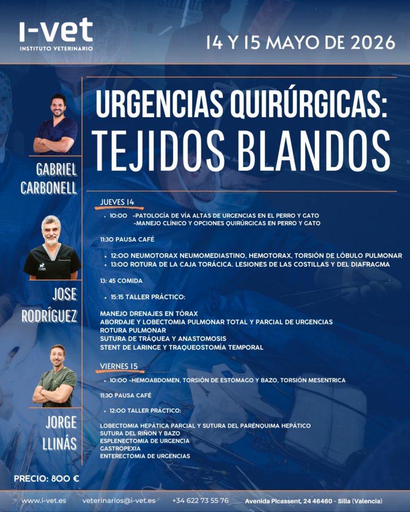 - PRECIO: 800,00€ (10% dto. Colegio Veterinarios de Valencia)